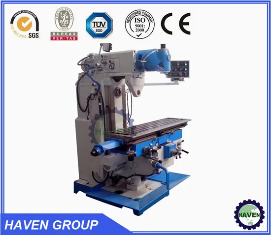 The Universal Rotary-head Knee-type milling machine is widely used in the machining workshop, with optional accessories as vertical milling head, dividing head, rotary table, machine vice, milling chuck, etc.