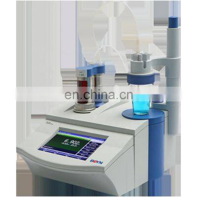 Product DescriptionProduct features:The system is ideal choose for applying in the food, pharmaceutical, agricultural and petroleum industries field. Automatically titrates, easy digital control and curve Easy to go-- function guide display walks you through operation Perform high accuracy of your measurements with burettes and sensors Everything you need in one meter for Pre-titration, Black titration, Pre-endpoint titration, Manual titration, Constant titration, or set titrating mode by customer Titration method: Acid/acidity, Redox, Precipitation, Complexometry, Non-aqueous titrations Data is convenience to export to a printer or PC via USB port & RS 232 port or be view, deleted in the meter. Store up to 200 data sets in the meter’ s memory for retrieval later Meter meets GLP requirementsProduct Paramenters ModelSpecificationBNTIT-P5B SeriesTitrationVolumetricTitrationUnitRepeatability of titration analysis0.20%DeviceAllowable error of titration capacity10ml Burette: ±0.025ml;20ml Burette : ±0.035mlResolution of burette10ml Burette : 1/20000;20ml Burette : 1/10000Resolution of drive1/30000Speed of infusion( 55±10 ) s( When the burette is full scale )MeasurementPotentialTitration(BNTIT-P5B)Range( -1999.0~1999.0 ) mV, ( 0.00~14.00 ) pHDeviceResolution0.1mV, 0.01pHBasic errorpH: ±0.01pH mV: ±0.03%FSStability( ±0.3mV±1bit ) /3hConductivityTitration(BNTIT-P5B-D)Range( 0~1.999×105 ) μS/cmBasic error≤±1.0% (F.S)Photometric Titration(BNTIT-P5B-G)Range50~1500mVStability±10mV/15minDead-stopTitration(BNTIT-P5B-Y)Polarization voltage100mV, 50mV, 30mVError of polarization voltage±10mVPolarization current range(0~199.9)μA, (0~19.99)μA,(0~1.999)μA,(0~0.199)μAError of polarization current±2.5% FSTemperatureTitration(BNTIT-P5B-T)Range(0~60) ℃Repeatability error0.001℃Temp. CompensationRange(-5.0~105.0) ℃Resolution0.1℃Basic error±0.3℃Power SupplyAC (220±22) V; (50±1) HzDimension (mm)& Weight (kg)540*490*480mm; 13kgStandard Configuration10mL Valve-Burette,213-01 Platinum electrode,216-01 Silver electrode,231-01 pH electrode,232-01 Reference electrode,217-01 Reference electrode,T-818-B-6 ATC probe,DJS-1C Bright conductivity electrode (BNTIT-P5B-D&BNTIT-P5B-Y),T-828 ATC Probe(BNTIT-P5B-T)pH bufferOptional Accessories20mL Valve-Burette;Auxiliary titration unitPhotometric electrode (620nm, 570nm,520nm for BNTIT-P5B-G); Anti-diffusion capillaryUpper stirrerISE probe;PrinterRecommend ProductsCompany ProfileWhy Choose UsFAQWhat is your minimum order quantity(MOQ)?Our minimum order quantity (MOQ) is generally 1 unit. The exception however is that for certain items (e.g. labware or consumables) the MOQ may vary.How long are your warranty?All BOYN products are warranted to be free from defects in material and workmanship under normal use and service for a period of one (1) year from the date of original installation or 14 months after shipment date from the manufacturer, whichever occurs first.How about the maintenance after the warranty period?After the warranty period, we are still responsible for after-sales service. As long as the useful life of the equipment is unexpired, we will provide paid services for replacement parts.How can I make payment? And what is your payment term?Payment can be made through wire transfer (T/T), letter of credit (L/C at sight), PayPal or Western Union.Our payment term is 100% deposit in advanceWhat is the packaging of your products?We always use high quality corrugated cardboard box or non-fumigation plywood case to pack them, even with inner void fill materials for extra protection.Do you deliver to ...?Yes we do! We deliver worldwide. The available Shipping methods: forwarding agencies by air & by sea & by train, Parcel services by DHL & FEDEX & TNT, or self-pickup.How long does it take to deliver the products after I place an order?Our lead time varies with our current storage and production schedule. Most of products can be delivered within 7-15days after receiving your full paymentHow long is the validity of quotation?Generally, All Prices quoted by us are valid for 30 days from the date of stated on the quotation.Can you modify your equipment to comply with different voltages power supply and sockets?In most cases yes, we can, but not always. Please contact us for detailsWho will install the unit in my place?The quotation do not include any installation and training fee.Your engineer should install it by himself with reference of user manual or installation video which provided by us.What if I have an issue with my order?If you have an issue with any of the products or services you have received from us, please contact us as soon as possible by calling +86-153-0652-2608 or contacting your Sales Consultant directly.