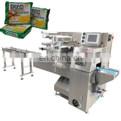 Professional Horizontal Food Flow Wrapping Packaging Machine For FrozenFood Spring Roll Bun Biscuits CakeProduct Description ModelRD-BM-508SRD-BM-408SPacking speed 35-120Bags/min 35-80bags/min Bag size L100-500, W50-200, H5-100MML100-400, W50-140, H5-70MMFilm WidthMax.500mmMax. 400mmPacking materialsKNY+PE, KNY+CPP, OPP+CPP,PET+CPP,PET+VMCPPDimension L:4000 X W:1139 X H:1680MML:2020 X W:990 X H:1400MMTotal power 3.5kwTotal weight 1400kgs 700kgs Application Suitable for rice roll, buns, breads, cakes, biscuit, frozen foods and trays or boxes. ONE MACHINE, MULTIPLE PURPOSE. SPECIAL DESIGN FOR BAKEHOUSE!! 1. Box-motion end seal, produce hermetically sealed packages that provide optimal product protection and logner shelf life.2. Cantileveled design.3. Full belt feeding design allows for easy clean-up.4. Full SUS304 machine body.5. Full-cover safety cover with safety switch.6. 1.5meter feeding conveyor can be cancelled when space is small,, total machine length less than 2 meters.7. Full servo motor and high end control system.8. Easy maintenance.9. No product, no package.10. M.I.S(misplaced item skip).11. 7.2 inch Fuji touch panel, 100 groups setting can be memorized. We are profeesional in automatic feeding & packing solutions , please see below cases, Foshan Ruipuhua Machinery Equipment Co., Ltd. was established in 2005 and is located in Nanhai Economic Development Zone, Foshan City, Guangdong Province. It is a professional intelligent assembly line equipment manufacturer integrating design, manufacturing, installation and technical services. The leading products include food packaging machines, packing lines,and high-speed mask production lines. Our products are mainly used in food, medicine, daily chemical, hardware, toys and other industries. It is an equipment supplier to many well-known food companies at home and abroad, such as Taoli, Panpan, Ma Dajie, Xu Fuji, Orion, Jin Longyu, Tongyi, etc. Our products cover 34 provinces and municipalities across the country and are exported to more than 100 countries, and have provided automatic feeding and packaging solutions for more than 4,000 customers. Why choose us?1. Manuals / Videos of machine installation, adjusting, setting, maintenance are available for you. 2. If any problems happened and you can not find out the solutions, online face to face communication available 24 hours.3. Ruipuhua engineers & technician are available send to your countries for services if you agree pay the expenditure.4. One year guaranty for machine. During the warranty if any of the parts broken not by man-made. We will free charge to replace the new one to you.5. Ruipuhua has an independent team for after-sale service. Any emergency please call the salesman or our after-sale's manager. Company Honor-National high-tech enterprise;---2016-National invisible champion of Nanhai manufacturing;----2017-Reported by CCTV (China Central Television) Financial Channel;----2018-Won the honoraty tiles of "Leader in the industry", "Single Champion","Transitional Special New", "Brand Enterprise", "Technological Enterprise", "Government Quality Award", "Foshan Engineering Technology Research Center"... ...----2018-Guangdong province market quality credit A-level customer satisfactgion enterprise. ----2019......