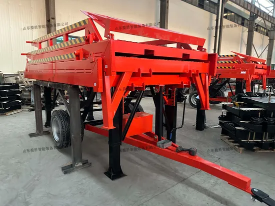 Loading and unloading platform in modern logistics site has been a very visible form of structure. It is the beginning and end of the enterprise logistics chain, is the enterprise fast, safe turnover products and goods of a loading and unloading operation platform. The height of loading and unloading platform is fixed, but the height of carriage is different. There is always a certain height drop or gap between transportation vehicle and loading and unloading platform. The forklift truck can not enter or leave the transport vehicle to load or unload the goods directly. Use the boarding bridge to provide reliable connections. The utility model enables the forklift trucks to safely and quickly enter and exit the transport vehicles for loading and unloading goods