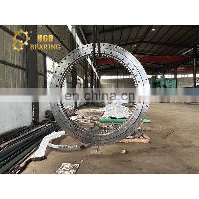 Why Choose UsProduct Description1,Single row four point contact ball slewing bearing2,Single row cross roller slewing bearing3,Double-row ball slewing bearing4,Three-row roller slewing bearing5,Roller/Ball Combination Slewing bearing.Single row four point contact ball slewing bearingSingle row cross roller slewing bearingDouble RowBall slewing bearingThree row roller slewing bearingRoller/Ball Combination Slewing bearingTypeSingle row four point contact ball slewing bearingRollng elementsSteel ball / Cylinder RollerRollng elements MaterialGCr5/GCr15SiMn/CustomizedBearing Material50Mn/42CrMo/42CrMo4V /CustomizedCage MaterialNylon/ steel /copperStructuretaper pin , Mounting holes,Inner ring ,grease fitting,load plug, seals , roller ,spacer balls or separatorsOuter diameter50-10000mmBore size50-10000mmMounting holeThrough hole/Tapped holeRaceway hardness55-62HRCInner and outer ring modulation hardness229-269HB/CustomizedGear typeNo gear ,Internal gear , External gear.Embellish greaseEP2 lithium lubricating greaseCertificateABS.BV,DNV,ISO9001,GLApplication areaLadle turret,Stacker crane,Bucket wheel machine,Solar heliostat Tracking System,port crane, Cabling machine,tower crane , offshore platform,ferris wheel, Palletizing robot,Rotary metallurgical furnace,can packing machine,Wind blade transporter,shield tunneling machine,tube push bench,excavatorBrand NameHGBPlace of OriginLuoyang HenanWarranty12 monthsPayment termT/T is our first choicePacking details1,Filling with anti-rust oil2.Corved with Plastic paper3.Corved with kraft paper 4.Corved with Blue tie 5.Put in wooden boxProduct DetailsBearing PartsSteel ball/Roller:carbon-chromium bearing steel GCr15SiMn or GCr15 for rolling MaterialCage: include integral cage, segment cage and spacer-type cage. 20# steel or copper for integral and segment cages, PA 1010 resin or QA110-3-105 albronze for spacer-type cages.Seals:uses NBR or VITON, few felted wool.Single row cross roller slewing bearingComposed of two or three rings. compact structure, light weight, high manufacturing accuracy, small assembly gap and high requirement for installation accuracy. Rollers are 1:1 cross-arranged.Can be bear axial force, overturning moment and large radial force at the same time,and widely used in lifting transportation, construction machinery.Three row roller slewing bearingThree row roller bearing able to bear all kinds of loads at the same time, it is the largest one of the four structural products with large axle and radial dimensions and firm structure. Especially suitable for heavy machinery requiring larger diameter, such as bucket wheel stacker and reclaimer, wheel crane, marine crane, port crane, ladle turret,large tonnage truck crane,heavy machinery and so on.Single row four point contact ball slewing bearingSingle row four point composed of two seat rings. has compact structure, light weight, and four-point contact between steel ball and arc raceway. It can bear axial force, radial force and overturning moment at the same time. The construction machinery of rotary conveyor, welding manipulator, small and medium-sized crane and excavator can be selected.More ProductsMore ProductsMore ProductsMore ProductsAbout UsWide production workshop and strong production team as a support,ensure the products can be produced by required quality and quantity. andThereby increase the customer benefits.The above is our production equipment with advanced technology , the stable and longevity bearing produce from these equipment .We specialize in the production of manufacturing slewing ring bearings or turntable Bearings.The Independent R&D and sales team in HGB , also do our best for special needs;We offer high-precision and high-quality slewing bearings, which are widly used in many fields,such as hoisting and conveying machinery, construction engineering machinery, harbour machinery, wind power generation and so on.CertificateFAQ1.Q: Are you trading company or manufacturer ?A: We are professional slewing bearing manufacturer with 20 years' experience.2.Q: How long is your delivery time?A: Generally it is 4-5 days if the goods are in stock. or it is 45 days if the goods are not instock, Also it is according to quantity.3.Q: Do you provide samples ? is it free or extra ?A: Yes, we could offer the sample, it is extra.4.Q: What is your terms of payment ?A: Payment<=1000USD, 100% in advance. Payment>=1000USD, 30% T/T in advance, balance before shipment.5.Q: Can you provide special customization according to the working conditions?A: Sure, we can design and produce the slewing bearings for different working conditions.6.Q: How about your guarantee? A: We provide lifelong after-sales technical service. Contact UsWechat/Whatsapp: +86 13663793011Skype: +8613663793011Company Name: Luoyang Hengguan Bearing Technology Co., LtdOffice Address: Room 1917, Block B, Yunfeng International, Jianxi District, Luoyang City,ChinaCell: +86 13663793011Factory Address: Bearing zone in Yiyang County, Luoyang City, China