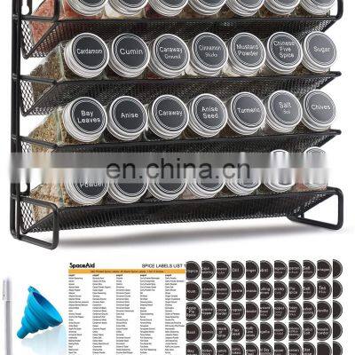 Spice Rack Organizer with Spice Jars, Spice Labels, Chalk Marker and Funnel Set for Cabinet, Countertop, Pantry