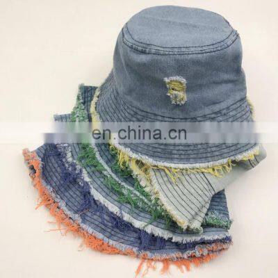 Two Tone Stylish Fashion Outdoor Travel Distressed Cotton Jeans Bucket Hat For Woman Lady GirlsProduct Description Photos of jeans bucket hat: Details description of jeans bucket hat:1) Material: Denim Jeans Cotton2) Size: adult 56-58cm3) Color: as per show4) Plain classic pattern5) Beautiful and cute Specification of jeans bucket hatModel NO.PT95258Descriptionjeans bucket hatSizeadult 56-58cmUnit weight0.09kgPatternplainColorAs per showPackingpolybagMaterialDenim Jeans Cotton Details pictures of jeans bucket hat: Packaging & ShippingPacking details of custom print bucket hat:1pc/polybag, about 0.18kgs Our Services 1) Your inquiry will be replied within 12 hours.2) Well-trained & experienced sales can reply your inquiries in English.3) Working time: 8:30 am ~6:00 pm, Monday to Friday (UTC+8).During working time, E-mail will be replied to you within 2 hours4) OEM & ODM projects are highly welcomed. We have strong R&D team.5) The order will be produced exactly according to order details and proofed samples. Our QC will submit inspection report before shipment.6) Your business relationship with us will be confidential to any third party.7) Good after-sale service. Company Information Ningbo Pinbo Plastic Manufacturer is one of most competitive supplier specializes in promotional gift items, was established in 2006. With more than 160 persons and many modern facilities, currently, we have already exported to America, Europe, Japan, Mexico and 20 other countries and regions. Your OEM and ODM product are welcome, our 6 experienced engineers and designers can work on your ideas. We regards “high quality, competitive price, on-time delivery, and fast and effective communications” as our tenet, hope to cooperate with more customers for mutual development and benefits. FAQ1) Moq is 10pcs2) Color as per Pantone3) Logo as per your artwork4) It cost USD50 and 5 days to make samples with your color and logo, it is refundable5) Our partners: