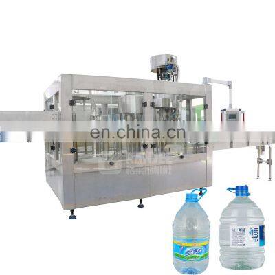 Automatic 3-10L big bottle water washing filling and screwing machine lineProduct DescriptionMachine description:This machine is a unique design combining the three machines of bottle washing, filling and capping in one to decrease main power, to save space and to diminish the air pollution among the three machines. It is applicable for mineral water and pure water filled in plastic bottles and capped with plastic caps, with optional capacity from 3000BPH to 20000BPH. It uses frequency changer to control the main machine motor. And it has an output number indicating function which is easy to control the adjustment of the output. Features1.Bottle travels on neck to neck from in-feed till out-feed resulting scratch free movement of bottle.2.Pressure filling nozzles deliver fast, efficient, and accurate dispensing with minimal dripping and leakage.3.No Bottle No Filling, no caps no capping, no caps auto stops4.When bottle jam auto stop, machine accident auto stop5.Open the window when machine running, machine auto paused6.Heavy duty stainless steel filling pump & rinsing pump7.Food grade 316L or 304stainless steel contact parts, smooth & fine polish,no dead angles8.Adopted first class component from Mitsubishi, OMRON, SIEMEN, With PLC, invertors control, touch screen, sensor, switch and other electric parts.9.Machine and cable arrangement designed according to CE standard and all safety standard CGF8-8-4 WATER WASHING FILLING CAPPING MACHINE Detailed ImagesWashing Part:The bottle enters into the rinsing part of three-in-one machine through wide conveyor belt.The grippers take the bottles from the inlet star-wheel while they are still driven by the star-wheel, thus guaranteeing a safe grip. After the gripping, the bottle is turned upside down with 180 degree and cantred above a spraying nozzle which directs a stream of rinse water into the bottle. After the draining period the bottle is turned over to an upright position againFilling valve: Long tube filling type with 2 times filling process to make sure perfect filling level Liquid tank, filling valves, controlling rings, upgrading cylinder.High speed and mass flow filling valve ensures the high filling speed and exact fluid level. Parts contacting liquid are all made of excellent stainless steel or food grade engineering plastic. Capping Part: Rotative capping turret, suitable to the application of screw plastic caps on PET bottles The fixed part consists of the cap hopper, the cap feeder with relevant motor and the cam actuating the capping heads. The heads are raised and lowered by the action of a follower that is riding on a shaped cam.Flat Conveyor Energy saving. High efficient. Adapt to customer factory layoutSpecial lubrication system, keep products clean, health, safety Extended service lifeElectric eyes design keep whole line running safety and quicklyOverload protection mechanism to effectively ensure the safety of the machineRelated productsCompany information Workshop detail Our team Our exhibition Project cases FAQQ1: How to find suitable machine or complete beverage production line?A1: Looking for beverage filling machine in www.grandeemachine.en.china.cn •Enquiry: Contact us by email, phone call, fax, Instant Messenger (Trade manager, Skype, WhatsApp, Wechat) and let us know your requirements • Discussion: Specify the items and what are you exactly looking for. Q2: Are you a trading company or a manufactory?A2: We are the manufacture of water/beverage filling machine and water treatment system over 10 years.We just not only sell drinking water machines and other related equipment , Quality is our culture. We have rich experienced engineers with technicians working team , providing good and after-sales service term , professional salesman terms . Q3: Do you have technical support after we purchased your machines?A3: We will arrange our professional technical to go aboard to your factory, they will help you and teach you how to install and maintenance the machines which you purchased. Or help you to fix machine when it has problems. Q4: If you buy our machines, can you offer us wear-out spare parts?A4: We provide our high quality machine 2 years guarantee , and we will also offer you 2 years wear-out spare parts for free. Once your machines broken or doesn't work within 2 years and you can't solve it, firstly, we will try to help you to find problems from your words description by phone or other communication tolls. Secondly, if the phone solutions still not work, our engineers will go to your factory to solve it. Meanwhile, they will teach you the related experiences for fixing. Why choose Grandee machinery