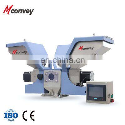 VRFeatures:* PLC control, touch screen display, and easy to operate and understand;* Modular assembly structure, convenient disassembly and assembly, easy to clean and exchange;* The standard base of the single-color doser is equipped with a hopper magnet to prevent damage to the screw rod of the molding machine;* The main hopper is the standard equipment of thedouble-color doser, and optional for the single-color doser;* Optional stirrer to break up additives with poor fluidity;* It meets the external signal input requirements, and records the current operation mode, and it is not affected by power failure, operating in the same mode after power restoration;* There are three feeding modes: gravimetric mode (this mode is of higher accuracy), volume mode, fixed ratio mode;* With weighing function, automatic calibration, and automatic monitoring of the addition of color master batch or additives;* With Ethernet communication function, data can be transmitted, and the amount of material recovered from the doser on the day can be recorded and stored;* It has the function of automatic color difference compensation, which can automatically adjust the proportion of color master batch or additives according to the proportion of recovered materials;* It uses the gravimetric weighing and measuring technology to control the mixing and dosing process, which can meet extremely high production accuracy requirements;* 50 groups of parameters, permanent recording of the discharge time and finished product weight (maximum output per minute for the extruder), and maintenance-free DC brushless motor;* Detection of color master batch blocking and overload, automatic shutdown for protection and alarm;* Based on the use conditions, set a certain number of mold cycles to add color master batch once to meet the micro-metering requirements.Working principle:* The signal from the control box is transmitted to the motor, and the motor starts operation to drive the screw rod to rotate through the coupling.* The color master batch in the hopper falls into the screw rod, and then is squeezed by the screw rod, and conveyed to the base by the screw rod. A weighing sensor is used to precisely control the output of the color master batch to realize the proportional addition of the color master batch, so as to achieve the purpose of accurately metering and conveying the color master batch.Scope of application:* Suitable for automatic proportioning and mixing of new materials, secondary materials, color master batches or additive materials;* With the screw diameter of 12mm, 16mm or 20mm, and four models that provide different output of 0.1-50kg/h;* Suitable for extruder and injection molding machine, only a little wiring is required for switching, and its rotation speed is automatically adjusted with the processing speed of the extruder to maintain a fixed color master batch ratio.Schematic diagram:Specification table:ModelOutput (kg/hr)Stepping motor power (w)Storage bucket (L)Screw rod outer diameter (mm)Plastic granule (mm)Color master batch ratio accuracyVoltageLSGD-120.5-15606123-5±0.3-1%1¢, 220V, 50HzLSGD-163-40606163-5±0.3-1%1¢, 220V, 50HzLSGD-205-50606203-5±0.3-1%1¢, 220V, 50HzNote: A main raw material hopper is optional for the above models; hopper loader (6U) + adapter flange; PLC control, touch screendisplay; Siemens load cell.Product Display
