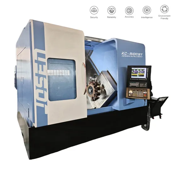 | 1. Equipped with high precision spindle: Eliminate spindle vibration effectively, The runout accuracy of the spindle positioning surface around than 2 μm. which provides the best workpiece stiffness, concentricity, surface roughness and roundness due to the workpiece clamping closer to the spindle bearing. It can also significantly prolong the service life of the tool. The front end of the spindle is a labyrinth sealing structure with positive air pressure protection to prevent coolant and impurities from entering the spindle. Twin spindle with Y axis driven turret can be from simple to complex one hit machining from raw material to finished parts .less setup time ,complete in one setup .during machining process can be turning ,milling, tapping, drilling, boring , hobbing ,slotting operation . 2. The main castings are made of high-grade cast iron by resin sand casting. Adopting advanced finite element analysis technology, the design structure is reasonable and the layout is optimized. And by aging treatment, it can ensure the long-term machining stability of the performance . 3. X and Z axis servo motors are directly connected with precision ball screws through flexible couplings with high precision, and the two ends of the screws are fixed, The reinforced bearing support seat and the ball screw are pre-stretched to ensure the rigidity of the transmission and the dimensional stability of the cooling and heating machine. 4. automatic centralized lubrication system to lubricate the screw, guideway and other moving parts through the set oiling interval and oiling duration to ensure the accuracy and easy service of the machine . 5. The spindle mounting with Magnetic ring encoder, which makes the positioning and C-axis indexing more accurate. 6. The 12-station BMT55 driven turret with bidirectional positioning index, short tool change time and high positioning accuracy, which is conducive to improving machining accuracy. The Y-axis 100 MM travel stroke (± 50) off centerline, capable of eccentric milling, drilling and tapping. High torque power turret and servo-driven C-axis are standardly equipped with 4-axis machining ability. 7. The feed system is driven by servo motor with roller screw drive for high precision and wear resistance. 8. The machine is supported by P-class large-size precision heavy-duty roller guideway with strong support rigidity and high guiding accuracy. The machine is fully protected by the outer cover to prevent the cutting fluid from splashing. |