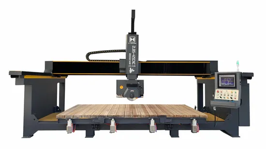 For processing marble, granite, porcelain, and quartz stone countertops, we provide CNC Bridge Saws of the ZLBS-425CNC/(5+1) A type. It is a precise, effective, and user-friendly machine. The operator begins processing after taking a picture of the plate and adding the drawing layout to the image. Saw blades, milling cutters, suction cups, and pressure plate cylinders will automatically generate combined processing steps according to the program. Before the milling cutter works, the program will automatically control the cylinders to press the plate. When the milling cutter is over, the cylinders will automatically drop, which is convenient for saw cutting.If the blade-cutting path conflicts, the suction cup can help.Additionally, conventional cross and straight slices of plates, various polygons, circles, ovals, and maws, as well as L-shaped countertops and four-sided under-hung countertops, are all cut and chamfer using the CNC Bridge Saw. The basin, faucet, and inner angles are all processed by the miller. Therefore, the machine is used to help install countertops without any dust. We also provide OEM/ODM production machine service; if you require anything, feel free to contact us.