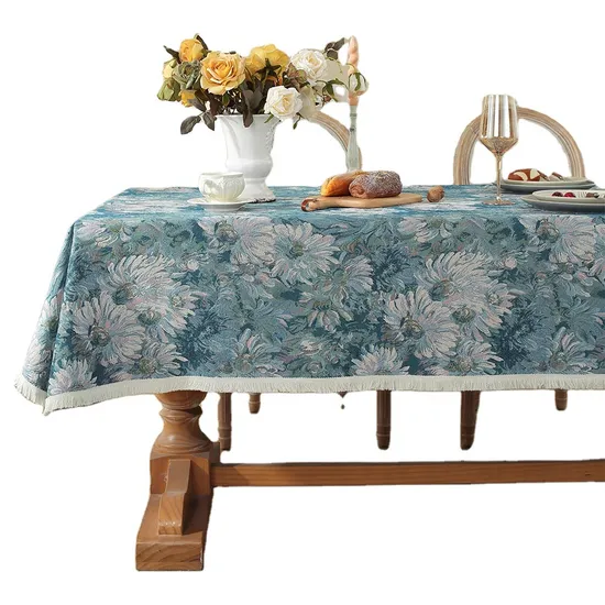 Selling Point 1.Customizable Design: Our French Vintage Oil Painting Yarn-dyed Table Cloth Tassel Household Rectangular Tablecloth Picnic Mat Table Cloth offers a unique selling point of customizable design. It allows customers to tailor the color, size, and pattern to their preferences, ensuring a perfect match with their existing décor or theme.