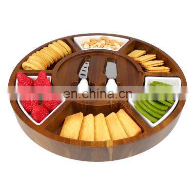 Acacia Wood Cheese Board Knife Set Charcuterie Board With Cutlery In Double Marble 2 Serving Utensils