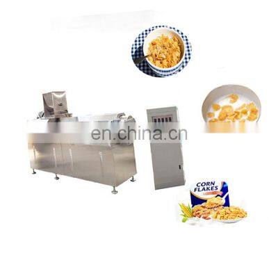 Breakfast Cereal Corn Flakes Production Line Corn flakes is one of the most import parts of breakfast cereals, it is a very popular food in the world. The raw material for corn flakes production is corn flour. The material should be peeled corn flour. Corn is planted world widely now, it is easy to get. With our Corn flakes machines, we believe you can realize your dream of making high profit in this business scope.Working Processmixing-----Extrusion-----Flaking(tabletting)----Drying----Cooking----Flavoring----Drying Equipment of corn flakes/breakfast cereals production lineMixer--- Screw conveyor--- Extruder--- Horizontal conveyor--- Air conveyor--- Flaking(tabletting) machine--- Air conveyor--- Dryer--- Air conveyor--- Salt cooking machine--- Sifter--- Hoister--- Flavoring system--- Dryer The host parameter list for a referenceModelInstalled Power(KW)Power Consumption(kw)Capacity(kg/h)Dimension(m)HX-65 processing line7452100-15017*1.2*2.2HX-70 processing line9570200-30020*1.5*2.2HX-85 processing line139102300-50028*3.5*4.3 Photoshow to contact us ?