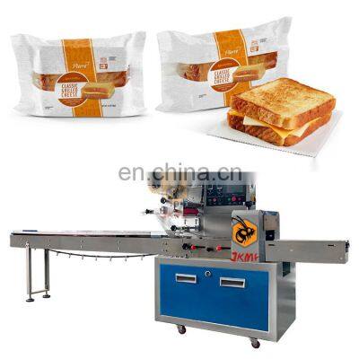 Good quality auto bread pillow bag horizontal packaging machine for sliced toast bread slice bread packing machine priceProducts DescriptionThe JK-B model flow packing machine features quick, easy changeover and adjustment that minimizes product and film waste and reduces maintenance costs.The machine working starts with a cylindrical roll of film. The flow wrapping machine will transfer the film from the roll and through to the forming collar (sometimes referred to as tube or plow). At the same time, a conveyor has lined up individual products for wrapping. The film is fed through the collar and the product is surrounded with film, sealed and the film is then cut. The finished individual product is then gathered downstream to be bagged or cartoned prior to boxing and palletizing.Automatic flow packing machine is a widely used packing machine. Suitable for all kinds of product packaging. Including medical supplies, vegetables and meat, baked bread, snacks and candy, daily necessities, hardware accessories, etc.Main Features1.Dual frequency conversion control, Bag length can be set and cut in one step, saving time and film.2.Interface features easy and quick setting and operation.3.Self failure diagnosis, clear failure display.4.High sensitivity photoelectric eye color tracing, numerical input of cutting sealing position for extra accuracy.5.Temperature independent PID control, more suitable for packaging different materials.6.Positioned stop function, without sticking knife or wasting film.7.Simple driving system, reliable working, convenient maintenance.8.All control is realized through software, easy for function adjusting and technical upgrade.Machine Working Process1st step: Put the packaging film on the holder and wear the film as required.2nd step: Setting the parameters you want by touch screen.3rd step:Put the materials to be packed on the conveyor belt4th step: The bag former will make the bag automatically.5th step: The horizontal and vertical cutter device will seal the middleand of the bag.6th step: You will get the nicely paper or plastic bag type.Why Choose UsJIKE BEE MACHINERY has a professional team to provide customers with various packaging solutions. Fully understanding the needs of customers,engineers design the most suitable solution. We have our own processing and assembly workshop and quality inspection and debugging process to ensure the quality of the machine. After acceptance by the customer, they are packed in international standard wooden cases and shipped.We will package the machine's instruction manual and a USB flash drive with machine operation videos together with the machine.Ensure that you can use the machine as soon as you receive it. If you have something you don't understand, our after-sales team will also help you answer in time.Our customers have covered more than 80 countries around the world.And give us unanimous praise.Company ProfileFoshan Jike Bee Automation Equipment Co., Ltd. is a manufacturer of automatic packaging equipment.We are a production-oriented enterprises focused on product innovation, factory direct sales and perfect after-sales service in one.The automatic packaging equipment for granule, powder, liquid and sauce produced by the JKMF company is at the advanced level of the industry,it can be customized production automatic material packaging line for all kinds of products .Mainly applicable to: food, hardware, drugs, daily chemicals, pesticides, fruits and vegetables, cosmetics, other industries.The company has its own patent and product technical certification, which can bring customers high quality equipment and worthy of customer trust.CertificationsFAQQ1:Do you have manual or operation video for us to know more about the machine? Yes, not only manual or operation video, 3D drawing also available to make as per your design,also the video we can make of testing the material from our packaging machine if your packing goods easier for us to find from our local market. Q2:How can I trust you for the first time business ?Please note our above business license and certificate. And if you don't trust us, then we can use Alibaba trade assurance service, guarantee your money, and guarantee your machine's on-time delivery and machine quality.Q3:Is engineer available to serve oversea?Yes, but the travel fee is paid by you. So actually to save your cost, we will send you a video of full details machine installation and assist you till the end.Q4:How can we make sure about the machine quality after we put the order?Before delivery, we will send you the pictures and videos for you to check the quality, and also you can arrange for quality checking by yourself or by your contacts in China.Q5:Will you provides the door to door service?Yes. Please offer us your final destination, we will check with our agent to see if it available, and most of the area is ok for us to clearing and sending in your countries.