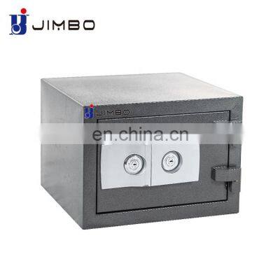 Products DescriptionFireproof safe*Product NameJIMBO Bank deposit secure home office fire box 2 key locks document fireproof safe*Brand NameJimbo*Product ModelH4 Series*SizeH320*W420*D420mmWeight48 kg*MateritalHigh quality cold rolled steel sheet Q235*Door Thickness22 mm*Body Thickness25 mm *LockElectronic Digital Lock*HandleBrushed solid steel handle*CertificateJIS, CE , RoSH , SGS , ISO 1182*Available colorWhite , Black , body and door can be in different colors*Packing5 layer standard export carton with thickened foam*SurfaceDurable electrostatic powder coating*Main productsFireproof safe, Bulglarproof safe, Home safe ,Vault door, Watch winder safe, Hotel safe box, Steel Lockers, Filing CabinetsWhy Choose Us?(1).We have an ISO 1182 fire protection certificate, and we have also tested a product fire test in the factory, and the product quality is very good, which is why our customers choose us.(2).If you need the safe box,we can provide safe's photos for you use.We build your brand,not our own!Please send us inquiry for discount!(3).Jimbo fireproof safe protect your most important documents and valuables for up to two hour at 1700˚F (927˚C).Fireproof For 2 Hour Up To 1700℃Factory fire product testingISO 1182:2020 Reaction to fire tests for productsInquire now and we offer free design and discountsRecommend ProductsCompany ProfileFoshan jimbosafe Co.,Ltd established in 2012, exporting our safe box to more than 118 Countries with over 10 years history . Located in Foshan,Guangdong, Jimbo owns 5,000m2 Modern Workshop, 50 Skilled workers,3 Reliable QC and 10 production machines and passed 4 certification (CE, ROHS, SGS, ISO). Through our experienced sales team, we finish 50,000,000.00+RMB turnover per year and keep growing.As Assessed Supplier by Alibaba, we hope can cooperate with you!Our TeamInquire now and we offer free design and discountsTestFAQProduction relatedIf you have any other questions, we would be more than happy to answer them for you. Please contact us below:Mrs. AnnEmail: annie@jimbosafe.com / Jessica@jimbosafe.com / sales01@jimbosafe.comMob & Wechat & WhatsAPP ::+861666567569Q: Do you provide samples?A: We can provide a sample with freight and handling charges at your expense.Q: How do you send your samples?A: We usually send via international couriers such as DHL, FedEx or UPS. We can also work with you if you have other alternative arrangements.Q: What is your lead time?A: Our production lead time is typically between 25 to 45 days from receiving payment, depending on chosen items, quantities and specific requirements. We can have off the shelf goods ready to be shipped in 5 to 10 days if there are available stock and no change request.Q: Is there any warranty offered for the product?A: A two-year Limited free-warranty is offered.Q: What are your payment terms?A: We can work with L/C or 30% deposit upon ordering and remaining balance prior to shipping of products. We can provide photos of finished goods and also accept on site final inspection.Inquire now and we offer free design and discounts
