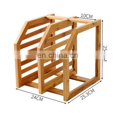 Kitchen Bamboo Dish Storage Holder Eco Friendly Multifunction 3 Tier Bamboo Storage RacksSpecificationItem number:AC064Size:24*25.3*25.5cmPacking:Shrink Packing+brown boxLogo:Laser engraving logoProduct DescriptionPacking & DeliveryTo better ensure the safety of your goods, professional, environmentally friendly, convenient and efficient packaging services will be provided.Standard package:Heat seal bamboo product +foam protective+brown corrugated boxCompany ProfileFounded in 2014,we are a professional manufacturer of premium bamboo products, including kitchenware, bathroom accessories, storage and organization in series. Our most popular items are drawer organizers, cutting board, cheese board and bath caddy.We provide hundred products for you and enrich your home decoration and kitchen life.We enjoy to take time with you to discuss how to make better products for your market.FAQ1.Are you factory?Where is your factory location?Yes,we are manufacture. Factory is located in Zhenghe,Nanping,Fujian.2.What is your main product?Our main products are kitchenware,chopping board(cheese board and cutting board),bath caddy and drawer organizers.3.Can you do customized products?Yes,we can and always do customized design.4.Does the product you supply have quality guarantee period?Yes,of course.Warranty is 1 year.5.How about your production capacity per day and per month?And what's the MOQ?Per day production capacity is 1000pcs.Per month production capacity is 30,000pcs.MOQ is 500pcs. We also can sell products stocks in small quantity.6.What is the lead time?About 45 days.It depends on the amount and the product.7.What's your payment term?T/T,30% deposit before production,70% balance against shipment or copy B/L.LC and Alibaba trade assurance at sight are also acceptable.8.Can you offer sample for us?How long can we get it?We can offer samples within one week with freight collect.But the samples cost should be on your account and will refund after order