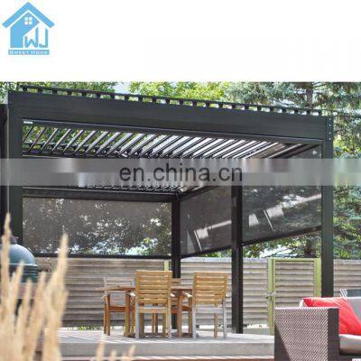 Product Name:Pergolas SystemPost size:150x150x3mm thickness aluminum profile very strong for aluminum pergola systemWidth Range:2.5m - 13.5mElectric Motor's Voltage:110V Or 230VRemote Control:1 Channel or 5 ChannelGutter:Complete with Gutter and Rain Spout for Inbuilt PVC DownpipeLouvres Blade Size:150mm /200mm/ 265mm Aerofoil Type Available, Waterproof Eeffictive DesignPivot Bolt:Highly Durable Aluminum with PP Blade End CapsOther Componentries:Heavy-duty internal fittings, Plastic bush, SS Grade Stainless Steel ScrewsTypical Finishes:Durable Powdercoated for Exterior ApplicationColors Options:We have our own color customized factory , we can custom any colors for youMotor Certification:TUV,CE,SGSFAQQ1. Is this aluminium louvered pergola easy to install?A: We have the assembly manual instruction specifically made according to your project site. It's a DIY product designed to be easily assembled and we can provide installation video. Q2. How long is your products' warranty?A: All our products have 10 years warranty. Q3:How to guarantee the quality of the products?A:We have our own QC team to control the products quality for all our clients'orders before loading. Q4. How can i get a price of needed aluminium louvered pergola?A: Please give the exactly size and quantity of your required aluminium louvered pergola. We can give you a detail quotation and free design solution based on your requirements. Q5.I am a small wholesaler, do you accept small order?A: It's no problem is you are a small wholesaler, we would like to grow up with you together and our MOQ is 1 set. Q6. Is my first time to export from China, what if i have no experience?A: Don t worry, we have very professional sale will guide for and we can provide one stop solution including deliver the door to your home address with customs. Q7. What kind of payment terms would you accept?A: We usually accept T/T, L/C, Western Union, etc. If you prefer other payments terms, please feel free to discuss with us. Q8. What if i meet the problem after installing and using this aluminium louvered pergola?A: As our principle is our business had been built on hoes & backed by customer service.we are verified supplier in Alibaba. com and our can provide 10 years warranty, so if you meet any problem for using thisaluminium louvered pergola,welcome to contact.