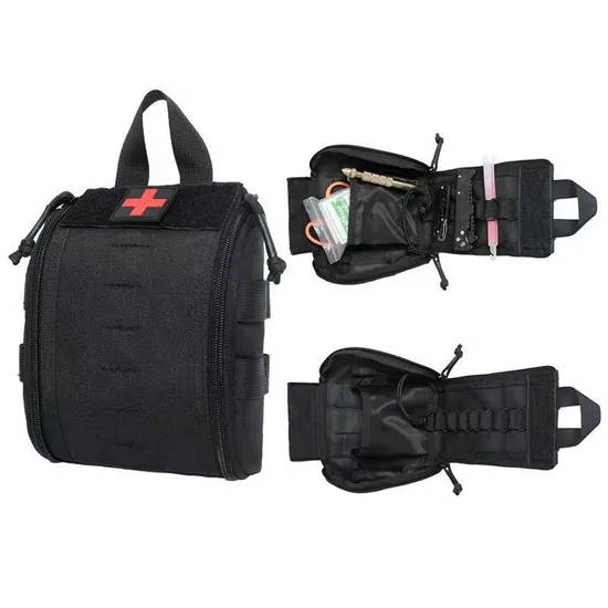 The first aid kit is made of durable nylon and has clearly organized internal pockets, making it easy for you to find what you need. This is an ideal first aid kit for travel or use in the war field, and is also easy to keep in your car or other bags. Please note that the contents inside can be customized according to your demand or the circumstances in war field. Just contact us for more details.