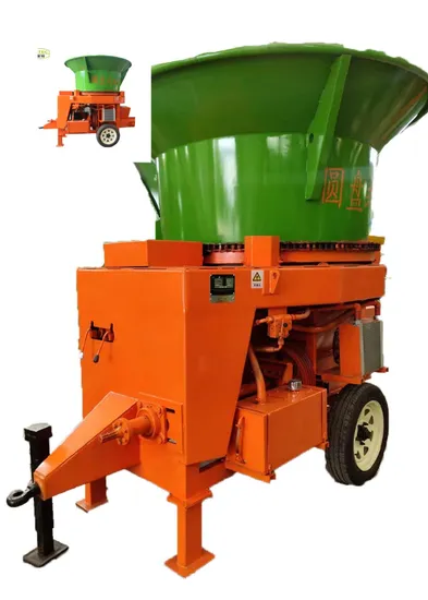 This machine is composed of rotary feeding bin, grass cutting and crushing device, frame and so on. The straw device is composed of spindle, rotor, fixed knife, throwing device and so on. Through the high-speed rotation of the rotor, using the hammer blade knife and fixed knife gap material, through the centrifugal force to throw the finished material. The rotating feeding bin is rotating without shaft, relying on idler wheel to support and oriented, in the inner side wall of the rotating feeding bin is equipped with push grass inclined plate, in the bottom plate of the bin is equipped with inclined arc turning grass block, inclined arc turning grass block's upper surface is a slanting structure, the material passes through the side of the turning grass block and the top of the block, so that the crushing device crushes the material, due to the rotating bin continuously the crushing device rotates, and the crushing device carries out continuously the Crushing. This greatly improves the production efficiency.