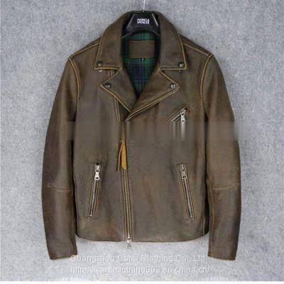 HOT SALE WASHED MEN'S GENUINE COWHIDE LEATHER JACKET 2021AW NEW FASHION