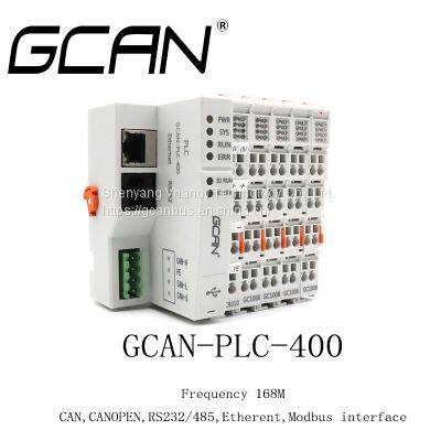 GCAN-PLC module is composed of a programmable control module (GCAN-PLC-400/510/511) and several I/O modules (GC-1008/2008/...). The control module uses high-speed CPU and has powerful computing and processing capacity. The control module also has a variety of fieldbus communication interfaces that users can use to connect to the corresponding network and communicate with other devices.