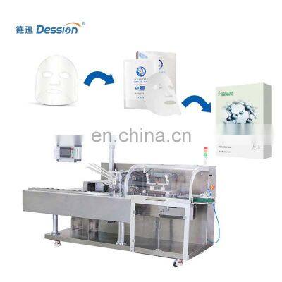 Products DescriptionDession box packing machine is widely applied in the single piece transparent film automatic packaging of all varieties of box-type things in the industries of pharmacy, food, healthy products, cosmetics, commodities, stationary and office supplies poker and cigarettes etc.ModelDS-BPCarton Size110-230*80-150*30-80mmCapacity40~70 box/minPower220V, 50HZWeight1300KGGas source0.5~0.8 MpaOptional DevicesDate coding printer, Air-filling device, Punching deviceMachine function and characteristic1.The machine integrated with electrical ,pneumatic, mechanical , working stable and reliable ,three cams design is the newest innovative and had patent and CE approved .2.It devices with imported components ,such as omron temperature controller,risk bearing. and all frame are made by ss 304.3.It uses inverter to control the speed, so could adjust according to the operation need.4.The mould change easy ,without dismantle drive chain ,hopper .save time greatly5.New type double safeguard construction , won't broke machine parts for any incident .6.One way hand wheel prevent from backward operation, and protect worker's safety when the machine operates for still hand wheel.7.New type dual cutting knife replace traditional single knife, so could use for very long time.Details ImagesProduct conveythe product convey pulls the product into the formed carton.Box storage slotPut the box in the storage slot.Bag taking deviceThe suction cup automatically sucks the box and shapes the box type.Pushing devicePush the product into the corresponding tray continuously while the machines is running.Box ear floding deviceThe box is automatically folded and sealed during transportation.Finished product outletThe product has been placed in the box and the carton has been packaged,the finished product is output.Why Choose UsDession is a modern packaging equipment solustion provider integrating R&D, production and sales.Since the establishment of the company, with the continuous exploration, research and application of advanced technology, the company's development has begunscale, with an innovative team of professional and technical personnel, engineers, sales and after-sales service personnel.Dession has a professional team to provide customers with various packaging solutions. Fully understanding the needs of customers,engineers design the most suitable solution. We have our own processing and assembly workshop and quality inspection and debugging process to ensure the quality of the machine. After acceptance by the customer, they are packed in international standard wooden cases and shipped. Recommend ProductsOur CompanyDession a leading manufacturer of Vertical Powder/Granule/Liquid Packaging machine, pillow packing machine and supporting facilities, which has successfully developed more than 80 kinds of packaging machines. Dession Packaging Machine has widely applied for different fields throughout the world, such as food/industrial food, medicines, hotel supplies, disposable goods, rubber goods, daily appliances, hardware fittings, sporting goods, toys etc.Dession has more than 5,000 square meters of production plants, 3 production workshops and a parts processing workshop, including small vertical machine production workshops, large vertical machine production workshops and pillow machine production workshops.CertificationsPacking & DeliveryPayment1.T/T and Western Union are accepted2.30% deposit before production and 70% balance before shipment3.All banking charges outside China are on buyersShipping1.Upon receipt of payment , delivery date will be in 15-30 working days,2.By Air, by Sea or by Express (DHL etc)3.Shipment cost will depend on the destination, shipment way and the weight of the goodsFAQQ1:Do you have manual or operation video for us to know more about the machine? Yes, not only manual or operation video, 3D drawing also available to make as per your design,also the video we can make of testing the material from our packaging machine if your packing goods easier for us to find from our local market. Q2:How can I trust you for the first time business ?Please note our above business license and certificate. And if you don't trust us, then we can use Alibaba trade assurance service, guarantee your money, and guarantee your machine's on-time delivery and machine quality.Q3:Is engineer available to serve oversea?Yes, but the travel fee is paid by you. So actually to save your cost, we will send you a video of full details machine installation and assist you till the end.Q4:How can we make sure about the machine quality after we put the order?Before delivery, we will send you the pictures and videos for you to check the quality, and also you can arrange for quality checking by yourself or by your contacts in China.Q5:Will you provides the door to door service?Yes. Please offer us your final destination, we will check with our agent to see if it available, and most of the area is ok for us to clearing and sending in your countries.
