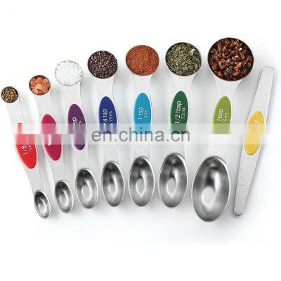 Recommend ProductsContact Info.Products DescriptionProduct NameMagnetic Measuring Spoons SetItem Number62Place of OriginJiangmen CityColorMulticolorMaterialStainless steelProductBox2 x 7.3 x 1.9 inchesCartonPackaging1set/ brown box, 10sets/master cartonProduct packagingWhy Choose UsOur PartnersFAQQ1: Are you manufacturer?A1: We are both Manufacturer and Trade company. You can get the best service and the best price from us.Q2: What is your MOQ? Is a small order OK?A2: Our MOQ is flexible. You can order as much as you want. Follow your need.Q3: How about the samples?A3: We can arrange the samples to you if you need it.Q4: OEM or ODM is available?A4: Yes. We provide both OEM & ODM.Q5: Can I print the LOGO on the carton box?A5: Sure. We will send the design document of carton box to you for customization. The MOQ of the customized carton box is 200.Q6: How long is the delivery time usually?A6: We usually have enough stock. Within 200 pieces can be shipped within 1-3 days.Q7: How about the shipping cost?A7: The size and weight of each product are different, so you can contact us at any time to help you calculate the shipping cost.