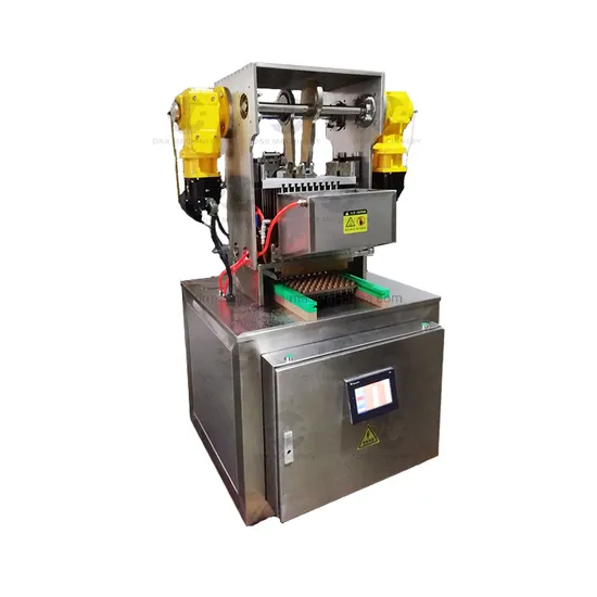 - The center distance of the 3D lollipop mould is 28.6, the mould is 8 holes in one row and push one mould once to complete depositing (the two pistons at both ends of the hopper are not used).