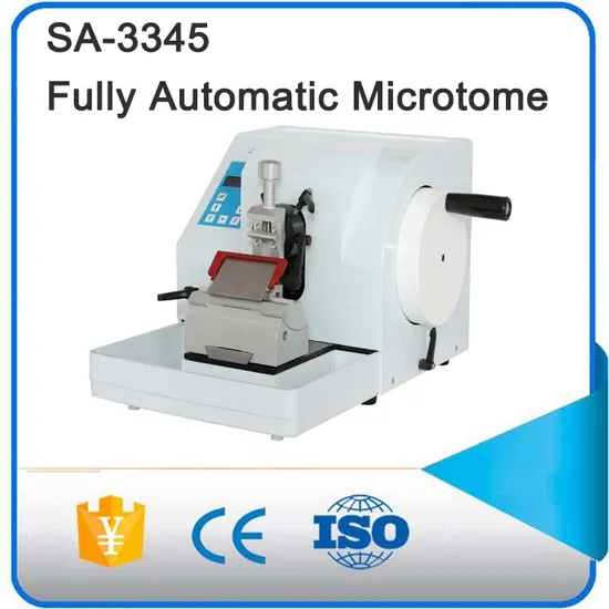 Product DescriptionOur product Focus on Pathology, foster patient diagonosis which covers from histology work Microtomes, Cryostats, Tissue Embedding System, Stainers, Tissue Processor ,Cover Slip,Printers to their Accessories .This model is specially developed for modern histopatholgy research.It adopts imported guide ways, ideal devise, stable performance, ergonomic concept, and it's new development direction of histopathologySpecimen block can be changed easily and convenientlySpecimen clamp positioned at 8 X/Y precision orientation systemErgonomical conception of devise, no feeling of tire for routine operationood section result whether by use of Standard Steel Knife or Disposable BladeHandweel system allow the handwheel locked at any positionPrecise section thickness control: The New Manual Rotary Microtome allows for precise control over section thickness with a range of 1~25 µm. This ensures accurate and consistent sections for various biological and histological samples.LCD display: The microtome is equipped with an LCD display that provides real-time feedback on the cutting thickness, allowing users to monitor and adjust the section thickness easily and accurately.Manual operation: This microtome is manually operated, providing users with complete control over the cutting process. It allows for fine adjustments and ensures the desired section thickness with each cut.High-quality sectioning: The microtome is designed to deliver high-quality sections with minimal distortion or damage to the sample. It is suitable for a wide range of applications, including research, clinical, and educational purposes.User-friendly design: The New Manual Rotary Microtome is designed with user convenience in mind. It features ergonomic controls and a sturdy construction, ensuring smooth and comfortable operation. The microtome is also easy to clean and maintain.Range of the thickness of slice: 1 - 35 μm. > 35 μm, setting any thickness for slice.Minimum setting thickness of slice: 1 μm.Precise error: ± 10%.Maximum section of slice: 50 x 40 mm.Adopted with mechanism structure internal with good stability that ensure the reproducible and evenly slices. It is universal used in the lab institute.Features:Full-automatic sectioning with adjustable speed and three sectioning modes: continuous, step and single.Cassette clamp and C clamp are optionalSpecimen orientation on X/Y axes 8°Self-diagnostic prompt. Emergency stop and foot switch (optional)