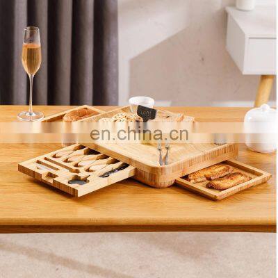 Products DescriptionChristmas Natural Premium Wood Bamboo Cutting Cheese Boards Slide Out Drawers With 4 Knifes SetColorBambooMaterial100% Natural BambooPackingBrown box and shrinkPortXiaMen,FuZhouPaymentL/C,T/T, trade assurance,Western UnionDescription1.Made of durable natural bamboo known to be environmentally friendly, stronger and more beautiful than regular wood.2.Ideal for serving breakfast, dinner, wine, or just anything else, or use for an elegant decoration display.3.Elegant sides with wide handles for easy grip. Surrounding tray lips prevent items from falling over.4.Hand wash with mild soap warm water, for extended life of tray use bamboo oil occasionally.In-store activitiesPelative ProductsFactory introductionFAQ
