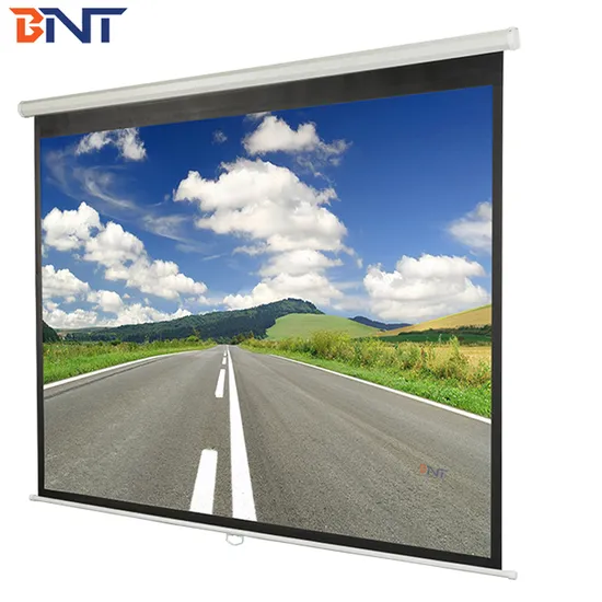 Manual Projector Screen is designed for projector projection from ceiling/wall mounted . Easy installation for audio video system in famliy or business using. 1.0 high gain with 100 degree viewing angle make screen projection more clear and high quality. The projection surface utilizes unique materials creating a smooth surface for superior image quality.