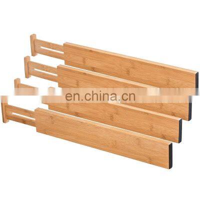 Products DescriptionProduct ParamentersNameBamboo Telescopic Divider Adjustable Kitchen 4 Drawer Organizer Partition Expandable Drawer DividersColorBambooMaterial100% Natural BambooSize43.5*6*1.7cmPackingBrown box and shrinkPortXiaMen,FuZhouPaymentL/C,T/T, trade assurance,Western UnionDescription1.Made of durable natural bamboo known to be environmentally friendly, stronger and more beautiful than regular wood.2.Ideal for serving breakfast, dinner, wine, or just anything else, or use for an elegant decoration display.3.Elegant sides with wide handles for easy grip. Surrounding tray lips prevent items from falling over.4.Hand wash with mild soap warm water, for extended life of tray use bamboo oil occasionally.Pelative ProductsFactory introductionProduct packagingFAQ