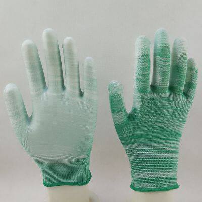 green and white polyester knitted pu palm coated anti-static safety work gloves for industrial workers