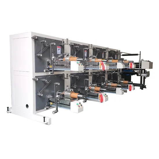 The slit spooling machine (multi-heads spooling line with slitter ) is applied for slitting jumbo roll of tapes and wind the slit strips to spools.