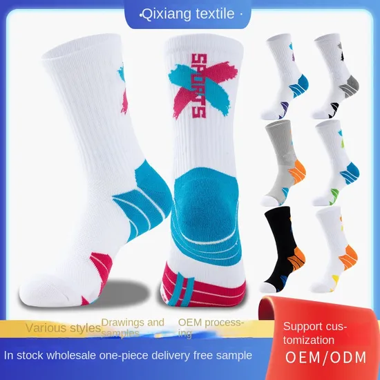 Customized mid-calf towel-soled sports socks, breathable and sweat-absorbent basketball socks. Product Description