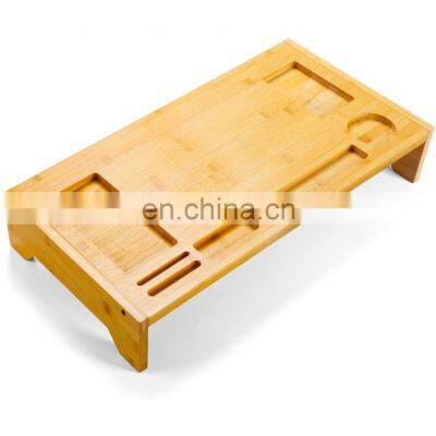 products display Packaging NameBamboo Monitor Stand Riser - 23 Inch Bamboo Desk Monitor Storage Organizer for Home and Office Computer Desk Laptop Printer TV Cellphone Stand Desktop ContainerItemZLO04012MaterialNatural bambooDimension (Customized is ok) usage.storage, decor, gift, party,restaurant,Household Items etc.Inner Packing optionsPoly bag;Shrink package;White box;Color box;PVC box;PDQ display boxLogo Printing OptionsLaser printing;Silkscreen PrintingMOQ500 PCSSample lead time3-7 working daysProduct lead time25-35 days depending on your products quantityPayment Term30% T/T deposit in advance, OR LC AT SIGHTFOB portFUZHOU, CHINA Company Information