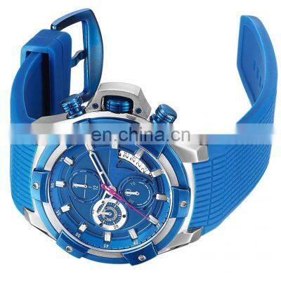 Sky-blue Silicone Straps Wrist Men Watch Japanese Multifunctional Movement Watches Fashion Sports Watch [ OEM & ODM ]