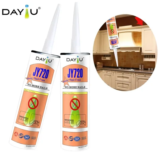 JY720 is a one component, interior grade,solvent based, high strength, fast curing construction adhesive. The easy solution for mounting without drilling. It can be used to bone most building substrates, including wood, timber, MDF, plastic board, polystyrene foam, masonry &concrete tiles, ceramic, metals, plastics, rubber & glass skirting, cornices.