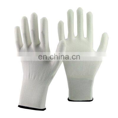 Wholesale Antistatic Cleanroom ESD Safety Hand Work Gloves♦Description: 1. 13 gauge seamless, fine knit glove, made from elastic, durable Nylon yarn2. Lint free and dust free Polyamide Fiber, washable3. Knitted wrist for better snug and fit4. Different cuff color to indicate sizes5. PU coated on the palm or fingertips are all available6. Packing: 12 pairs per bag, 300 pairs in a carton7. Logo: We could do washing label, silkscreen print, heat transfer print, rubber print and also could as your request. Our AdvantageWe are real FactoryProduct NameESD Gloves BasicMaterials:Nylon, PUColor:White, other color avaliableSize: XS-XXLWeight: 20-50g/Pair Logo Print1.Silk Screen Printing2.Heat Transfer Printing3.Rubber Printing4.Washing Lable5.Other ways as your requestMOQ1000 pairs ApplicationMaintenance, Cold Storage, Aerospace, Construction, Engineering, Plumbing, Assembly Industry, Automotive Manufacturing, Packaging, Glass Industry, Aluminium Industry etc.CertificateCE, ISO,SGSPackage1 pair/plastic bag, 400pairs per cartoncarton size: 55*26*35cm Thanks Welcome to contact me if you have any question.Alina YueHenan Huayi Glove Co.Ltd.Address: No.3 DongFeng Road, Zhengzhou, ChinaTel: 86 371-63550688 Fax: 86 371-60222952Mob: +8618039202157(WeChat and WhatApp)Website: E-MAIL: sales8 @huayiglove.comPackaging & Shipping Our Services Company Information Why Choosing US1.Best price With powerful production lines and knitting machines, we have much advantage to offer most competitive price2.Delivery time Normal glove within 5-10 days, customized glove no more than one month3.Dipping line PU dipping line with 3000 dozens per day Sandy nitrile dipping line of 1200 dozens each day.4.Knitting Machines 13gauge knitting machine: 300 sets with 3000 dozens glove liner per day15 gauge knitting machine: 102 sets with 1000 dozens glove liner per day30 people workshop to develop the TPR sewing glove.5.QC Strict quality control system to make sure the quality is good and stable.6.Building good friendship In the most of case,good friendship is above on business for us,we have many business with 0 profit to support our friend todevelop their local market.FAQ1. Q:Are you a factory or trading company? A:We are a glove factory(both on the glove liner knitting and PU/Nitrile coating)more than 10 years.2.Q:Where is your factory located? How can I visit there? A:You can fly to Shanghai Airport,we will pick you up in Shanghai to Nantong about 2 hours.Sincerely welcome you visit our factory anytime.3.Q:Do you have CE certificate of your products? A:We are cooperating with CTC, and TUV test labs for many years. Most gloves with CE certificates.4.Q:How can I get some samples? A: Upon we received you samples,we will OEM your sample about 2 days,or we make the sample according to your idea. 5.Q:How does your factory do regarding quality control? Six steps make sure you are buying the qualified goods: Step 1: Raw materials checking,and a trial production before batch producing. (all glove liners will be wear on hand mould to make all our data in glove machine are Mold closing during the trial producing.) Step 2: Skilful workers pick out faulty ones while cutting extra thread; Step 3: Overlocking staff collect faulty glove shell; Step 4:Demoulding worker pick out the faulty ones on Dipping lines. Step 5: Packing staff take out faulty ones when packing; Step 6: QC manager spot check before leaving warehouse.6. Q:Warranty A:We accept customer’s returns if there were quality problem.7. Q:Shipping Service A:We would like book vessel for our customer by our own shipping company;meanwhile we also like to cooperate the customer’s shipping agent to arrange vessel space. All of the designs of Cut Resistant Gloves, TPR Anti-impact Gloves, Heat Resistant Gloves, PU Gloves, ESD Gloves, Sandy Nitrile Gloves, Knitted Gloves and other general work gloves are fully and easily customized offering OEMs high quality, cost effective options that meet their OEM application specific demands. Hot Sell PRODUCT