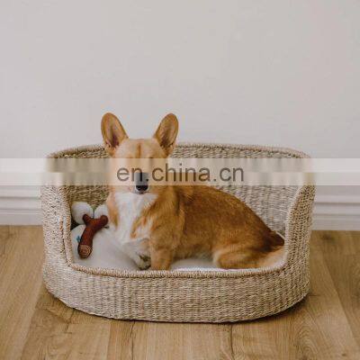 Product DescriptionHot Sale Seagrass Wicker Pet Bed, Organic Cotten Blend Cushion Durable House Wholesale made in VietnamEach of our pet house is handcrafted by craftwomen at nothern traditional village in Vietnam. With every touch instilled with diligence, love, and care, we hope to reach the heart of our valued customers.Pet house is the great home for cats and dogs because of the followings:- It is made of natural seagrass eco-friendly,- It gives your pet its own space to sleep well, and will feel warm in winter and cool in summer.- The only really great gift for cat lovers and cat owners.- It is amazing home decor, and benefit any interior.- You can put it on the floor or go out with handles and portableTypeStorage BasketsUseNeatening/StorageMaterialseagrassFeatureSustainable, StockedFunctional designMultifunction, FlexibleDimensional tolerance<±1mmWeight tolerance<±1%(含)Related ProductRecommended By SellerMain MaterialPacking & DeliveryOur Selling PointsFAQCompany Profile