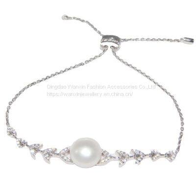 S925 sterling silver diamond freshwater pearl wheat bracelet
