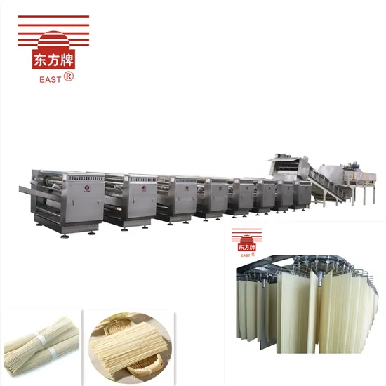 This production line is used Fine dried noodles. Stick Fine dried noodles are one of the staple foods in Asia, especially in China. The noodles made by our company are rich in product types, and the shape, length and thickness of the noodles can be customized according to the needs of customers. It has big capacity while use small area, less labor, lower energy consumption, which is the first choice for stick noodle mass production and very popular among users. The Dongfang newly designed tunnel with adoption of special chain system and longitudinal conveying system, keeps moisture and temperature changing continuously with stable noodle conveying. Automatic noodle up-conveying, down-conveying, cutting and packing have lighten labor force and improved sanitation. The daily output is from 8 tons to 90 tons.