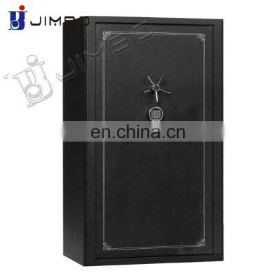 Products DescriptionGun safe*Brand NameJimbo*Product ModelGSF Series*MateritalHigh quality cold rolled steel sheet Q235*Door Thickness42 mm*Body Thickness15 mm*LockElectronic Digital Lock*HandleBrushed solid steel handle*CertificateJIS, CE , RoSH , SGS , ISO 1182*Available colorWhite , Black , body and door can be in different colors*Packing5 layer standard export carton with thickened foam*SurfaceDurable electrostatic powder coating*Main productsFireproof safe, Bulglarproof safe, Home safe ,Vault door, Watch winder safe, Hotel safe box, Steel Lockers, Filing CabinetsWhy Choose Us?(1).We have an ISO 1182 fire protection certificate, and we have also tested a product fire test in the factory, and the product quality is very good, which is why our customers choose us.(2).If you need the safe box,we can provide safe's photos for you use.We build your brand,not our own!Please send us inquiry for discount!(3).Jimbo fireproof safe protect your most important documents and valuables for up to two hour at 1700˚F (927˚C).Fireproof For 2 Hour Up To 1700℃Factory fire product testingISO 1182:2020 Reaction to fire tests for productsFeatures1: Fully upholstered grey interior with two-stage racks, each rack can store up to (10) long guns, including (4) Adjustable / movable shelves with additional storage options. 2: New improved solid steel locking bolt with thickness of 32mm3:1000 ° f for 60 minutes fire protection 4: Maximum 24 long guns capacity (14-24 long guns) 5: Fine steel structure 6: A total of 14 solid steel locking boltsRecommend ProductsCompany ProfileFoshan jimbosafe Co.,Ltd established in 2012, exporting our safe box to more than 118 Countries with over 10 years history . Located in Foshan,Guangdong, Jimbo owns 5,000m2 Modern Workshop, 50 Skilled workers,3 Reliable QC and 10 production machines and passed 4 certification (CE, ROHS, SGS, ISO). Through our experienced sales team, we finish 50,000,000.00+RMB turnover per year and keep growing.As Assessed Supplier by Alibaba, we hope can cooperate with you!Our TeamTestFAQProduction relatedIf you have any other questions, we would be more than happy to answer them for you. Please contact us below:Mrs. AnnEmail: annie@jimbosafe.com / Jessica@jimbosafe.com / sales01@jimbosafe.comMob & Wechat & WhatsAPP ::+861666567569Q: Do you provide samples?A: We can provide a sample with freight and handling charges at your expense.Q: How do you send your samples?A: We usually send via international couriers such as DHL, FedEx or UPS. We can also work with you if you have other alternative arrangements.Q: What is your lead time?A: Our production lead time is typically between 25 to 45 days from receiving payment, depending on chosen items, quantities and specific requirements. We can have off the shelf goods ready to be shipped in 5 to 10 days if there are available stock and no change request.Q: Is there any warranty offered for the product?A: A two-year Limited free-warranty is offered.Q: What are your payment terms?A: We can work with L/C or 30% deposit upon ordering and remaining balance prior to shipping of products. We can provide photos of finished goods and also accept on site final inspection.