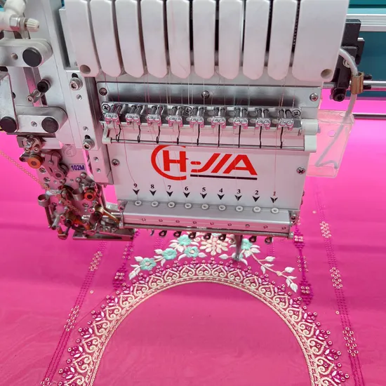 Main feature for the embroidery machine: 1 20 heads 9 needles high speed embroidery machine 2.Automatic thread trimmer/with thread lock system 3.Single head double lever high speed head with jump solenoid4.Japan KOBAN rotary hook, GROZ needles, TOWA brand bobbin....5.With CH-JIA advanced oil mist system and dusty clean system6.Downside beam(one-piece whole beam), no vibration while running high speed7.All users-friendly covers (outside all covers) not use screws8.Downside square tube edege side with rubbers to avoid injury9.Main shaft with user-friendly tool 10.Memory size 100, 000, 000 stitches11.Max speed 1200RPM12.Electricity:110V/60Hz or 220V/50Hz available13.needles bar and head both with suched micro-oil