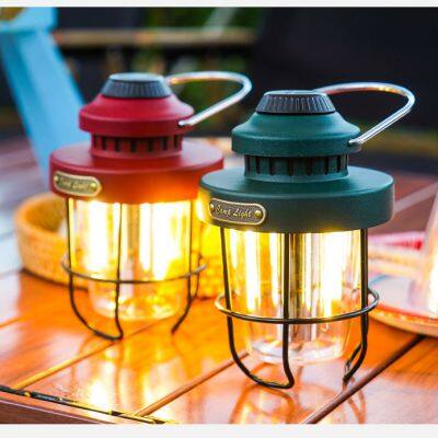 Outdoor Rechargeable Camping Light Rotating Tungsten Wire Warm White Light Two Adjustable Iron Craft Tent Light