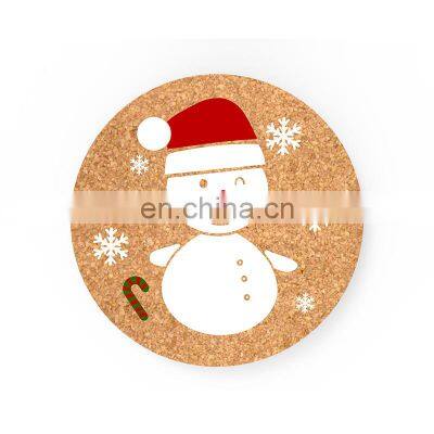 Wholesale Natural Color Customized Logo Christmas Santa Cup Glass Mat Cork Coaster