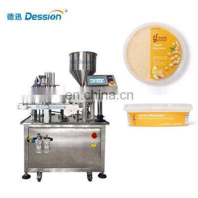 Industrial Ice Cream Machine Filling Paper Cups Ice Cream Cover Sealing MachineProducts DescriptionRelated Accessories :Note: Co-branding is available-customize your own lid and package with your logo to promote our brandWorking Processcup dropping devicefilling deviceFoil sealing deviceColorful Touch ScreenHopper and liquid pumpSampleTechnical DatasDS-900ADS-900BPacking speed400-600 cups/hour (output 1 cup)800-1200 cups/hour (output 2 cups)Machine size(L*W*H)1200*1500*1700mm1300*1600*1700mmPower1.2KW1.6KWAir pressure0.5-0.7MPaMachine Weight350KG400KGWhy Choose UsDession is a modern packaging equipment solustion provider integrating R&D, production and sales.Since the establishment of the company, with the continuous exploration, research and application of advanced technology, the company's development has begunscale, with an innovative team of professional and technical personnel, engineers, sales and after-sales service personnel.Dession has a professional team to provide customers with various packaging solutions. Fully understanding the needs of customers,engineers design the most suitable solution. We have our own processing and assembly workshop and quality inspection and debugging process to ensure the quality of the machine. After acceptance by the customer, they are packed in international standard wooden cases and shipped. Recommend ProductsFAQQ1:Do you have manual or operation video for us to know more about the machine? Yes, not only manual or operation video, 3D drawing also available to make as per your design,also the video we can make of testing the material from our packaging machine if your packing goods easier for us to find from our local market. Q2:How can I trust you for the first time business ?Please note our above business license and certificate. And if you don't trust us, then we can use Alibaba trade assurance service, guarantee your money, and guarantee your machine's on-time delivery and machine quality.Q3:Is engineer available to serve oversea?Yes, but the travel fee is paid by you. So actually to save your cost, we will send you a video of full details machine installation and assist you till the end.Q4:How can we make sure about the machine quality after we put the order?Before delivery, we will send you the pictures and videos for you to check the quality, and also you can arrange for quality checking by yourself or by your contacts in China.Q5:Will you provides the door to door service?Yes. Please offer us your final destination, we will check with our agent to see if it available, and most of the area is ok for us to clearing and sending in your countries.