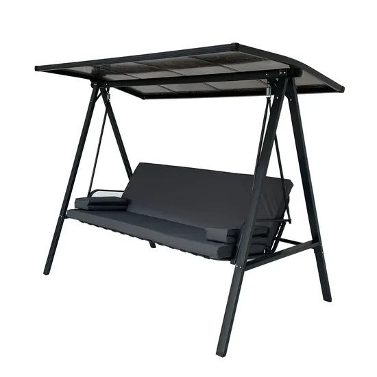 Deluxe Gray PC Board Three-Person Garden Patio Swing Product Description