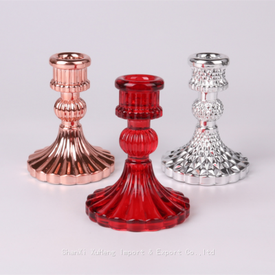 Rose Gold Crystal Decorative Candle Stand Centerpiece Clear Glass Candlestick Holder Red Taper Candle Holder