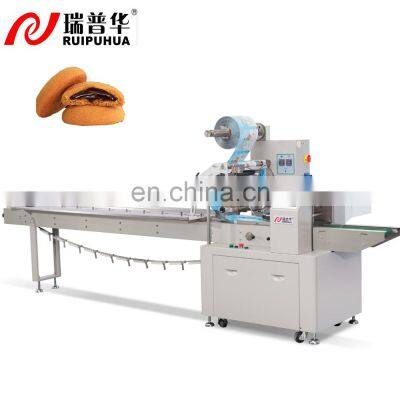 horizontal packaging machine pillow pack bread biscuit packaging with gas nitrogen filling system Horizontal Pillow Bag Automatic Flow Packing Machine With Remote Controlled Function Three Servo Packaging Machine is mainly used for various kinds of solid objects with regular shape,such as food(bread/cake/butter/cream/cheese/cookies), pharmaceuticals tools, daily necessities, hardware, or any other products loaded in box or tray. ModelZP-500Packaging speed(bag/minute)35-300bag/minPacking sizeL85-230mm W20-90mm H5-50mmMaximum width of film(mm)<280mmThickness of film(mm)0.03mm-0.05mmTotal power220V,50/60HZ,6.3KWOverall size(mm)(L)4000*(W)770*(H)1600mmWeight750kgPackage4.0CBM,2CASESOverall size (mm)OPP/CPP, PT/PE, KOP/CPP, ALU-FOIL etc. Other Packing Machine Technical Parameter (1) Menu storage and memory functionThe controller can save a variety of parameter configurations, and the recipe can be used when the product or packaging film is replaced by calling out the formula on the touch screen. (2) Bag length unlimitedThe industry-leading electronic cam algorithm, the bag length range is from 60mm to unlimited length, the bag length is set and cut immediately in one step, saving time and film. (3) Nitrogen filling function (3) No product, no bag function/ Anti-cutting functionAdvanced electronic anti-cutting, electronic anti-empty bag algorithm. The empty material film stops, saving packaging materials. (4) 3-Servo motor/PLC controlThe horizontal seal is controlled by an independent servo motor, and the longitudinal seal and the feeding tailstock are controlled by a frequency conversion motor. The mechanical structure is simple, the operation is stable, and the noise is low. (5)High precisionThe feeding speed is automatically tracked, and the packaging machine automatically accelerates and decelerates. High speed, higher precision, double knife speed can reach 300 packs/min, error ±1mm. (6) Man-machine interface, convenient and quick parameter setting, automatic tracking of color code, automatic correction of cutting length. Digitally input the sealing and cutting position to make the sealing and cutting position more accurate. (7) The fault is automatically diagnosed, and the fault display is clear at a glance. (8) Well-known brand servo motor/controller/touch screen, vertical sealing/discharging belt brush. (9) Optional configuration: coding machine, double support paper, automatic film connection, inflation, spray alcohol, lifting panel, stainless steel machine body. Company Honor