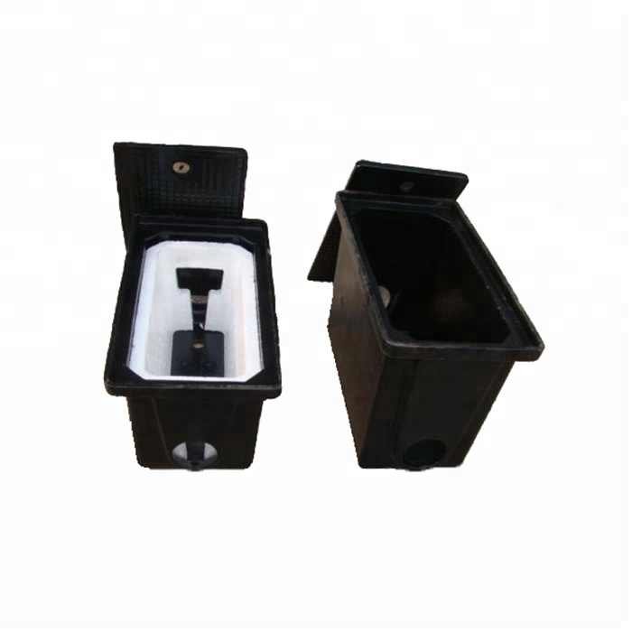 | Features | 1. Complete plastic shell, solid and robust design, long service guaranteed. 2. For installation of both 15mm and 20mm water meter 3. Material: PP material for box container, cover, bottom. Or PA For box container and box cover. ABS material for box bottom. 4. Box tap: slip surface hinged to allow opening of more than 90 degree. 5. 12months of warranty. 6. Resistance load is more than 1500lbs(7KN). |