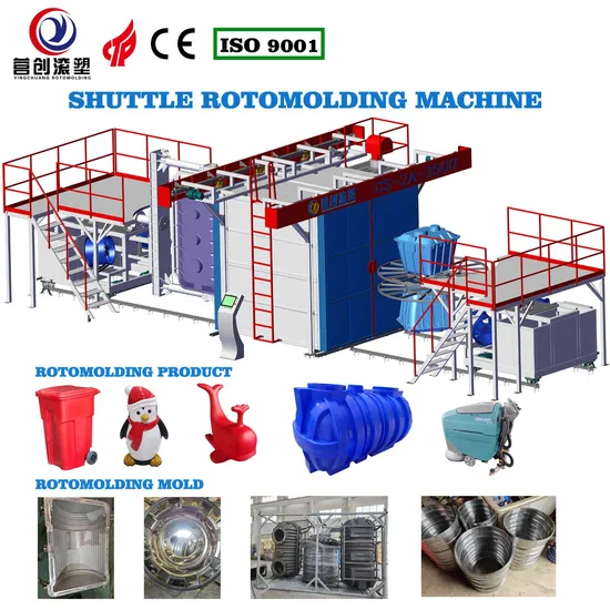 Shuttle rotomolding machines are often used for manufacturing large, hollow plastic products such as tanks, containers, automotive parts, playground equipment, and storage bins. The shuttle system allows for efficient production by reducing downtime between cycles and enabling multiple molds to be used in the same machine.