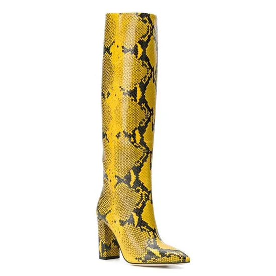 | Product Name | High Block Heel Long Boots Tall Boot Slip On Pointed Toe Ladies Winter Shoes Chunky Heel Snake Print Knee Boots For Women |